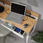 Компактное рабочее место с ящиками, где можно хранить ручки, бумагу и другие необходимые мелочи.