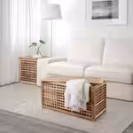 Придиванный столик — практичное решение с крышкой, удобное для хранения таких вещей, как одеяла.