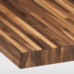 Столешница с верхним слоем древесины грецкого ореха — натурального материала, поверхность которого можно при необходимости ошкурить и обработать.