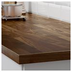 Столешница из ДСП с поверхностью из массива грецкого ореха толщиной 3,5 мм.