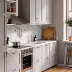 Создайте гармоничное решение, дополнив столешницу подходящей настенной панелью.
