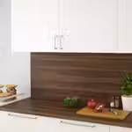 Создайте гармоничное решение, дополнив столешницу подходящей настенной панелью.