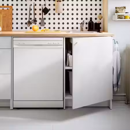 Фасады СТЕНСУНД белого цвета привносят нотку загородной жизни — благодаря обрамленной передней части и рифленым панелям, создающим непринужденный ремесленный стиль.