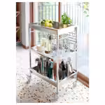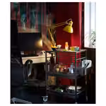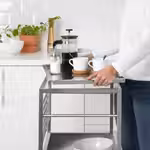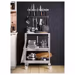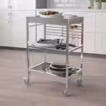 На тележку можно поставить грязную посуду, блюда для сервировки стола и другие нужные вещи. Зафиксируйте ее на месте или перевезите туда, где она вам больше всего нужна. Деревянная столешница сделает интерьер уютнее и ближе к стилю