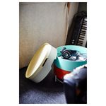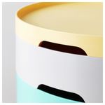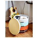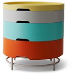 Многофункциональный и компактный столик. Отделения различной глубины можно использовать для хранения разных вещей. Пластиковые накладки для защиты пола от царапин прилагаются. Не использовать на улице. Высота: 45 см. Диаметр: 44 см.