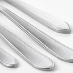 Нержавеющая сталь — прочный и простой в уходе материал.В набор входит: вилка, нож, ложка и чайная ложка, по 4 штуки.Вымойте изделие перед первым использованием.У ножа немного более матовая поверхность, чем у других столовых приборов этой серии.