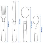 Столовые приборы изготовлены из нержавеющей стали — прочного и простого в уходе материал. Благодаря ручкам столовые приборы удобно держать в руке. В комплект входят: 6 вилок, 6 ножей, 6 ложек и 6 чайных ложек.
