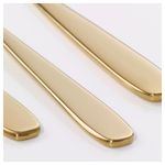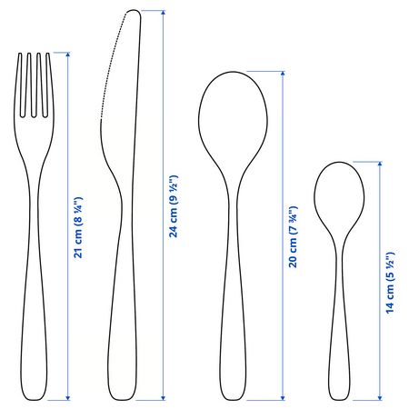 В комплект входят: 6 вилок, 6 ножей, 6 ложек и 6 чайных ложек. Нержавеющая сталь, Металлизированный. Материал, из которого изготовлено данное изделие, подвергается переработке.