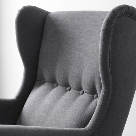 В кресло СТРАНДМОН с подголовником и высокой спинкой, округлыми подлокотниками и мягкой обивкой так и хочется присесть.