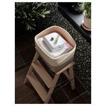 Устойчивый табурет с вместительным ящиком под сиденьем, где можно хранить полотенца, запасы туалетной бумаги или детские игрушки для купания.