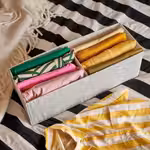 В один ящик можно положить носки и футболки, а в другой — спортивную одежду или сложенные свитера.