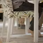 Чехол надевается на весь стул целиком и фиксируется застежками-липучками, поэтому его легко снять и снова надеть.