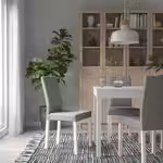 У этих стульев нет подлокотников, поэтому вы можете задвинуть их за стол, чтобы сэкономить пространство.