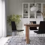 Создайте уникальную обеденную зону с серией SKÅLSTA, комбинируя сиденья с каркасами стульев и столешницы с ножками для стола, либо просто выберите готовый комплект.