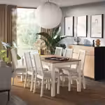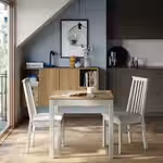 Создайте уникальную обеденную зону с серией SKÅLSTA, комбинируя сиденья с каркасами стульев и столешницы с ножками для стола, либо просто выберите готовый комплект.
