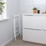 Благодаря отверстию в спинке стул можно повесить на стену, что позволяет экономить место при хранении.