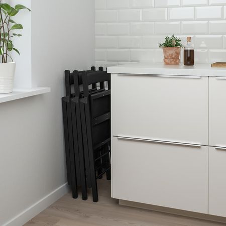 Пару дополнительных стульев удобно хранить в сложенном виде, чтобы они были наготове на случай прихода гостей.