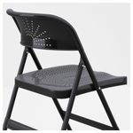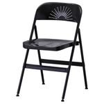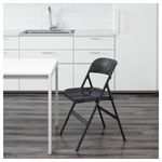 «Металл – твердый материал. Работая над дизайном складного стула ФРОДЕ, мы старались сделать форму спинки и сиденья максимально комфортной. Декоративные отверстия также обеспечивают вентиляцию, поэтому вам не будет жарко. Складной стул – действительно гениальное изобретение, ведь при хранении такие стулья займут совсем немного места, а когда придут гости, вы без труда обеспечите всем возможность с комфортом сидеть вокруг стола».