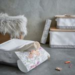 Материал пропускает воздух, поэтому одежда и другие вещи дольше остаются свежими.Легко выдвигать и поднимать благодаря ручкам.Можно сложить, что обеспечивает компактное хранение. Ширина:  44 смГлубина:  51 смВысота:  19 см.