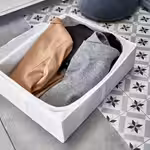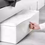 Можно поставить под кровать — отличное решение для хранения постельных принадлежностей.