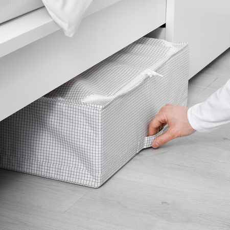 Можно поставить под кровать – отличное решение для хранения постельных принадлежностей.