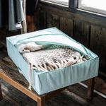 Можно поставить под кровать – отличное решение для хранения постельных принадлежностей.Защищает одежду от пыли.Сетчатые вставки в углах обеспечивают циркуляцию воздуха – вещи дольше остаются свежими.