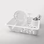 Эта посудная сушилка вмещает тарелки, миски, чашки и столовые приборы.