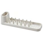 У сушилки STÄMLING продуманная конструкция, которая вмещает тарелки, стаканы, кружки и столовые приборы, а вся вода собирается в поддоне.