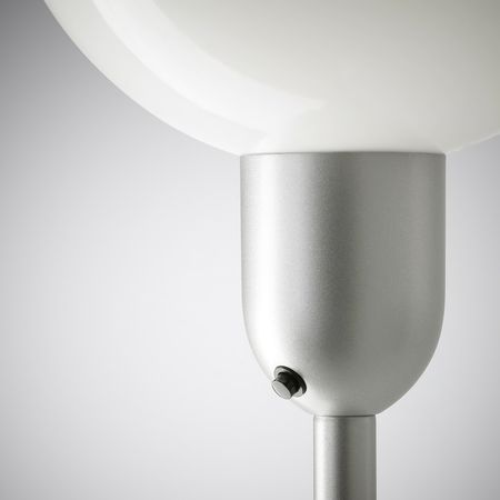 Белый абажур этого напольного светильника, как плиссированная юбка, спускается вниз к трем стройным ножкам из массива бука.