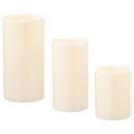 В набор входит: 1 светодиодная свеча (высота 10 см, диам. 7 см), 1 светодиодная свеча (высота 14 см, диам. 7 см) и 1 светодиодная свеча (высота 16 см, диам. 8 см).