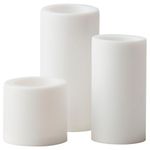 В набор входит: 1 светодиодная свеча (высота 17 см, диам. 8 см), 1 светодиодная свеча (высота 13 см, диам. 7 см) и 1 светодиодная свеча (высота 8 см, диам. 8 см).