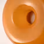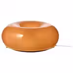 Когда свет проходит сквозь оранжевое стекло, весь светильник, выполненный в форме пончика, озаряется теплым сиянием.