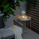 Декоративная настольная лампа необычной формы в современном стиле поможет вам создать уютную атмосферу для ужина на свежем воздухе. Можно дополнить другими светильниками и гирляндами этой серии.