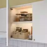 Пассивный инфракрасный датчик светильника реагирует на движения тела и тепло, автоматически включая свет при открывании шкафа или ящика.