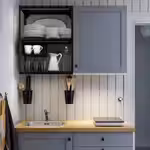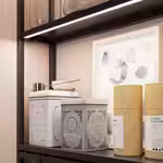 Наклейте светодиодную ленту под настенными шкафами и открытыми настенными каркасами ЭНХЕТ в качестве рабочего освещения или используйте ее для красивой подсветки открытых настенных каркасов.