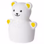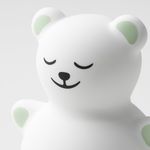 На одной стороне лампы у медведя открытые глаза и ярко-желтые уши, а на другой — закрытые глаза и зеленые уши.