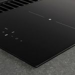 Варочная панель с лаконичными прямыми кромками и красной подсветкой на панели управления, где можно легко регулировать каждую зону нагрева — просто нажмите «+», чтобы увеличить температуру, или «–», чтобы уменьшить её.
