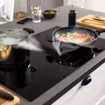 Индукционная варочная панель TÄCKNAN из серии IKEA 300 со встроенной вытяжкой позволяет наслаждаться видом и беседой, ведь вам не будет мешать громоздкая вытяжка перед глазами. В ней есть всё необходимое для приготовления вкусной еды в приятной