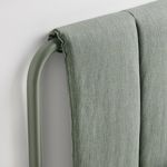 Мягкая серо-зеленая ткань «кульста» в полоску придает кровати особый характер, и на детали каркаса нанесено порошковое покрытие в тон ткани.