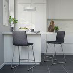 В дизайне серого барного стула ЛИЛЛЭНЭС современный стиль сочетается с комфортом сиденья с мягкой набивкой и удобной спинкой.