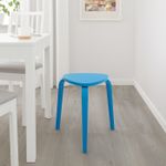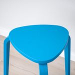 Этот универсальный табурет синего цвета с тремя ножками придет на помощь, когда неожиданно появятся гости или вам просто нужно будет положить книгу или поставить кружку.