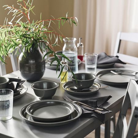 Эта посуда приглушённо-серого цвета с классическим дизайном в рустикальном стиле вдохновляет на красивую сервировку стола — не только в особых случаях, но и каждый день.