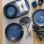 Глазурованная десертная тарелка насыщенного синего цвета с золотисто-коричневым ободком станет достойной оправой для ваших кулинарных шедевров.