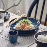 Глазурованная глубокая тарелка насыщенного синего цвета с золотисто-коричневым ободком станет достойной оправой для ваших кулинарных шедевров.