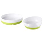Ребенку удобно есть из такой посуды благодаря широкому плоскому дну тарелки и миски и нескользящей поверхности, обеспечивающей устойчивость на столе. Из этой глубокой посуды малышу будет удобно есть самостоятельно. Рекомендовано для детей от 0 лет.