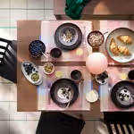 Столовая посуда ФЭРГКЛАР лаконичного дизайна прекрасно сочетается с другими предметами сервировки.
