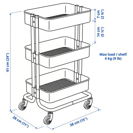 RÅSKOG 005.867.89 Тележка, белый 28x38x61 см