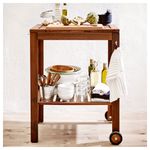 Тележка ЭПЛАРО/КЛАСЕН обеспечивает дополнительное место для хранения. Легко перемещать. Также удобно использовать рядом с грилем ЭПЛАРО/КЛАСЕН – для размещения посуды и аксессуаров. Мебель обработана полупрозрачной морилкой в несколько слоев.