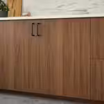 Фасад с пленкой под грецкий орех дарит ощущение натурального материала, а вертикальный рисунок имитирует естественную древесину.