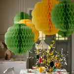 Эти подвесные объёмные украшения разных цветов и размеров задают настроение празднику!